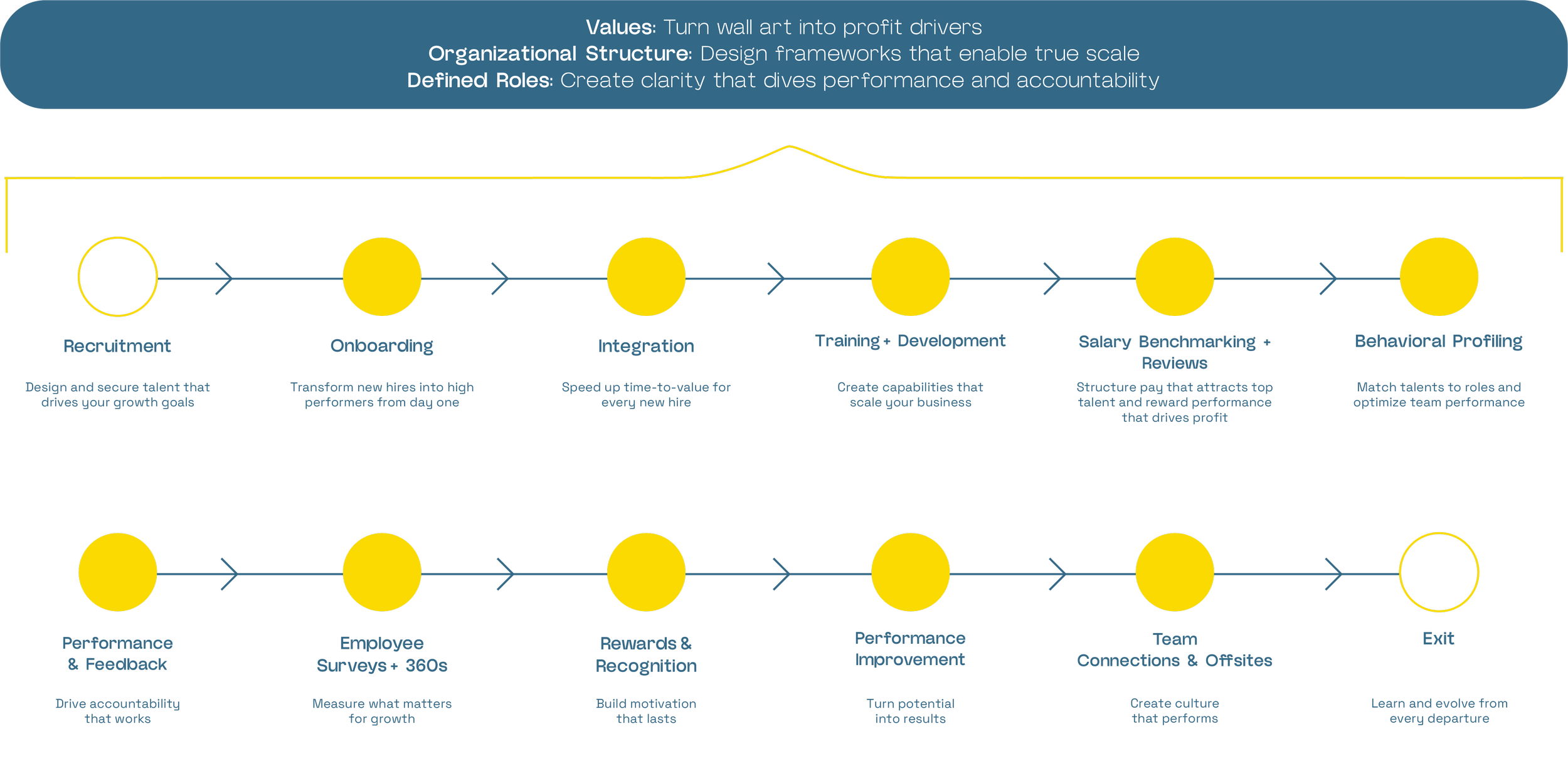 This Employee Roadmap is our strategic blueprint for building high-performance workplaces. We carefully architect each stage to align with your business goals, ensuring every element of the employee experience drives real results, not just manage people.